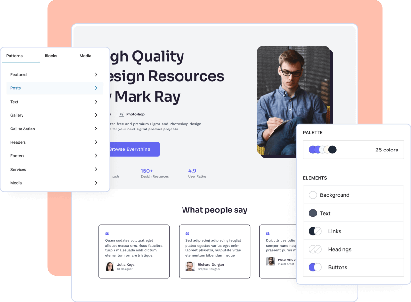 Los patrones de bloques son diseños de bloques prediseñados que podemos insertar fácilmente en el contenido. Estos patrones pueden ayudarnos a ahorrar tiempo y a crear diseños visualmente atractivos. Nos permite crear temas personalizados utilizando la plantilla basada en bloques.